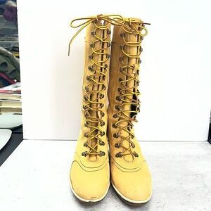 Timberland Knee High Lace-Up Yellow Genuine Leather Boots Womens Size 9M