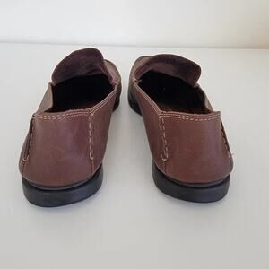 Tags: leather loafers, brown slip-ons, office shoes, comfy work shoes, business casual, classic flats, minimalist footwear, preppy, women’s shoes size 7.5
