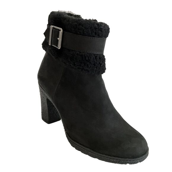 Timberland Leather Ortholite Faux Fur Cuff Buckle Bootie Black 8.5