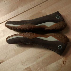 Preowned, Women's Timberland Leather/Suede Slip-On Loafers. Lots of life in these shoes. Model 29651. Size 8.5. Normal wear overall, some small faint marks left shoe (difficult to see). Soles in very good condition (see photos). See pictures for overall condition.
