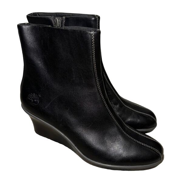 Timberland Leather Zip Wedge Ankle Boots Black Size 5.5