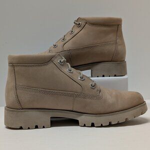 Timberland Lyonsdale Chunky-Sole Leather Boots in Light Beige & Grey
