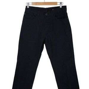 These men's black denim jeans offer a classic fit with a sleek look, suitable for various settings. The durable denim material ensures longevity and comfort, making them a reliable choice for any wardrobe.
