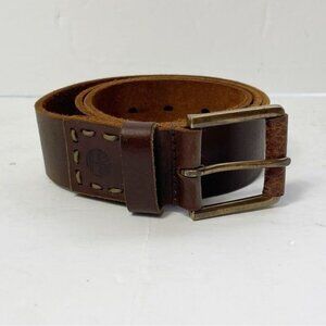 Timberland Mens Brown Leather Belt Brass Buckle 40MM Width Rugged Size 34