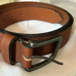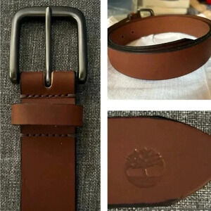 Timberland Men's Classic Brown Leather Belt Gun Metal Buckle Size 34|