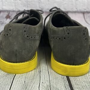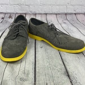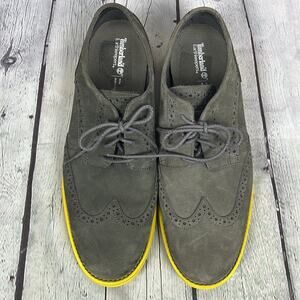 Timberland Men’s Gray Wingtip Suede Loafers Bright Yellow Sole Size 10 Preppy