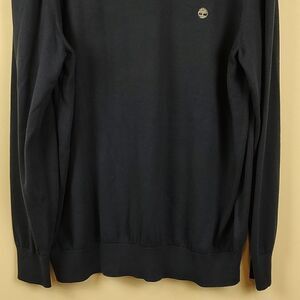 Timberland Navy Blue Crew Neck Sweater. This sweater features long sleeves, crew neck, Timberland logo on the left chest, ribbed cuffs and hem, and super soft fine gauge 100% cotton knit. Size XXL.