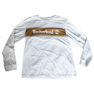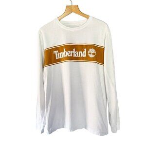Timberland Mens Sz M White Long Sleeve Spell Out Graphic Pullover Tee Shirt