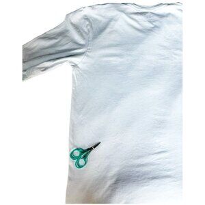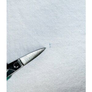 Shirt is preowned in good condition. I found a tiny little blue dot on the back. Might be paint. Very hard to see while worn but it’s there. Please see photos.