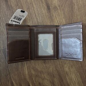 Timberland Mens Trifold Brown/Grey Leather Wallet NWT