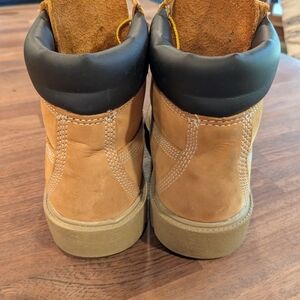 Rugged and stylish Timberland boots. Wheat leather with sturdy construction. Ideal for outdoor wear.