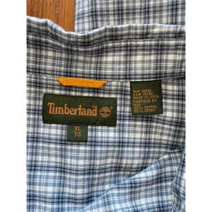 Timberland Mens XL Long Sleeve Button Up Polo 100% Cotton Plaid Gray White