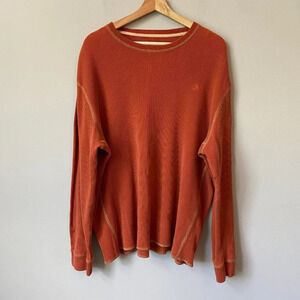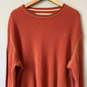 Timberland Mens XL Long Sleeve Waffle Thermal Knit Orange Pullover Shirt Outdoor