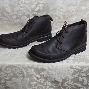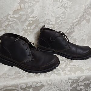 Brown leather shoes casual kind of like boots. Tie Front. Some small scuffs see pic but overall good condition