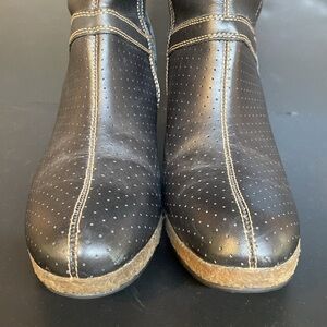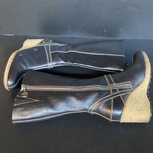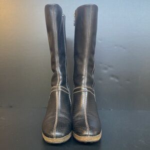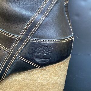 Timberland Monogram Tall Classic Black Leather Wedge Heel Boots 86324 Womens 9