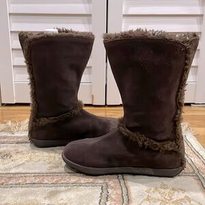 Timberland Mukluk Brown Suede Warm Women’s Sz 5.5M Slip On Faux Fur Winter Boot 61642 in phenomenal condition. Get these beautiful soft suede warm brown slip on boots today.