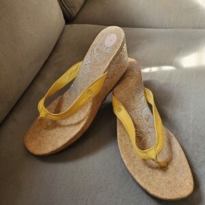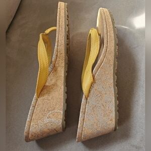 Timberland Mustard Leather Thong Wedge Sandals Size 8.5