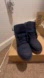 Stylish navy blue boots featuring a vibrant orange lining. Perfect for a bold look.