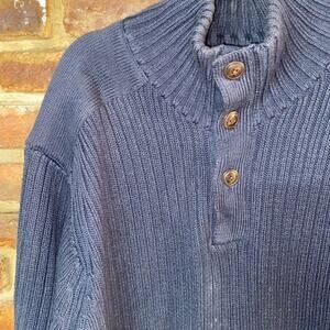 Timberland Navy Blue Ribbed Knit Quarter Button Mock Neck Sweater Men's Size XL