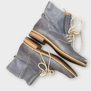 Navy leather boots with lace-up front. Timberland logo embossed on the side. Durable and stylish.