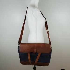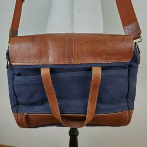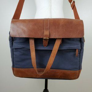 Timberland Navy Leather Trim Briefcase Messenger Bag