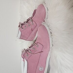 Timberland Nellie Chukka Ankle Boots Pink Leather Rugged Lug Sole Spring Outdoor