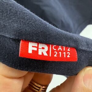 Timberland PRO flame-resistant (FR) long sleeve crewneck shirt in navy blue, size 3XL. CAT 2 / NFPA 2112 compliant for reliable protection and comfort on the job. Durable workwear built for electricians, welders, and industrial environments.