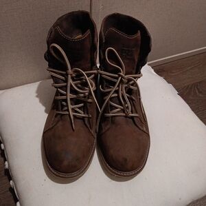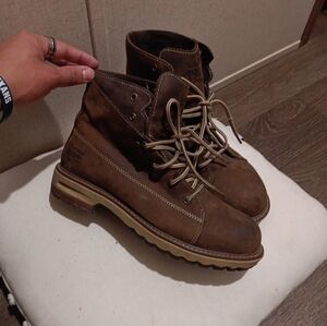 Step out in style with Timberland's rugged brown leather boots. Perfect for any adventure, these boots offer durability and comfort.