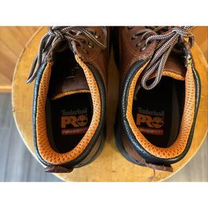 Timberland PRO Ladies' TiTan Oxford Shoe safety toe size 8M leather brown has minor blemish on side see pictures