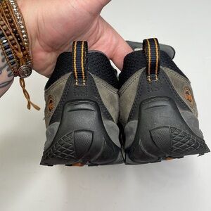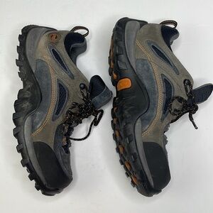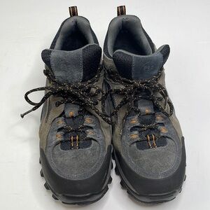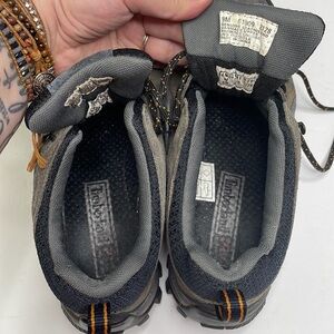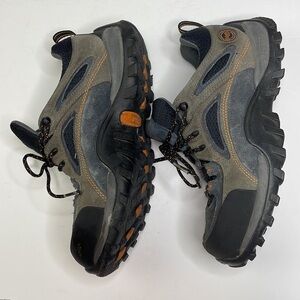 Comfortable high quality work shoes in grey/tan and navy. Built with nail-free construction to help insulate you from the ground to slow down conduction, but is not intended to be primary protection against electric shock.