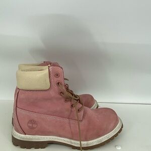 Chic pink Timberland boots. Cream collar and sturdy design. Make an offer!