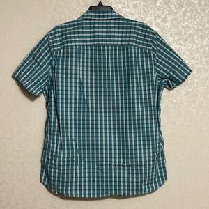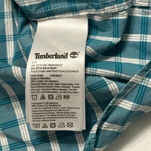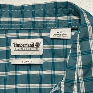 Timberland Plaid Shirt Short Sleeve Button Up Slim Fit Aqua Green & White XL