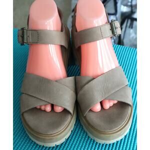 Timberland Platform Sandal 9.5 Taupe Leather Nubuck Open Toe Lug Sole Block Heel