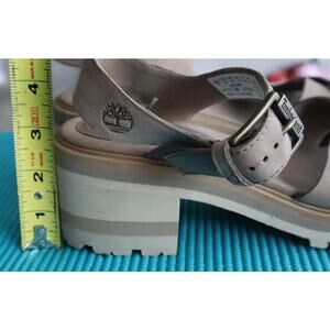 EXCELLENT CONDITION! Timberland Platform Sandal 9.5 Taupe Leather Nubuck Open Toe Lug Sole Block Heel