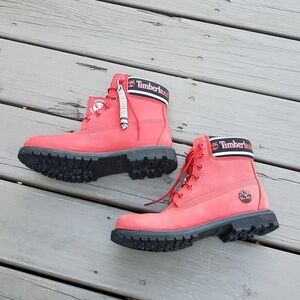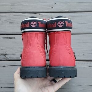 Timberland Premium 6" Red Nubuck Logo Spellout Limited Edition RARE HTF Boots