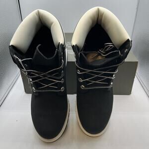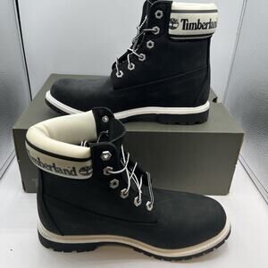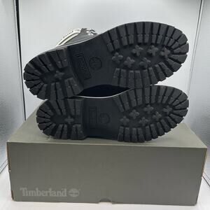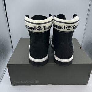 The Timberland Premium 6" Waterproof Boots in women's size 9 are a stylish and functional choice for casual or workwear occasions. Made of black nubuck leather with a round toe and low block heel, these lace-up boots feature a waterproof design and comfortable leather lining. The ankle shaft style and rubber outsole make them ideal for outdoor activities in winter, fall, and spring. With the Timberland brand's reputation for quality, these boots combine durability with a classic combat style for a versatile addition to any wardrobe.