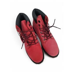 Timberland Premium 6-Inch Waterproof Boots Red Nubuck Junior 5 Y2K Hip Hop Style