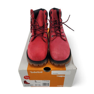 Timberland Premium 6-Inch Waterproof Boots Red Nubuck Youth Boys 5 Y2K Hip Hop Style