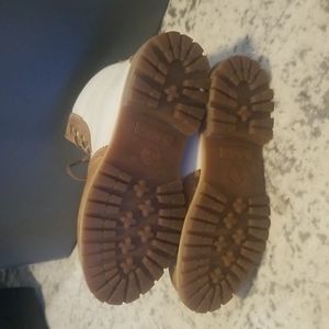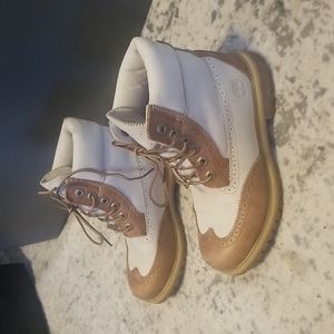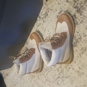Gently worn Timberland Premuim Brogue wingtip tan / off white boots
