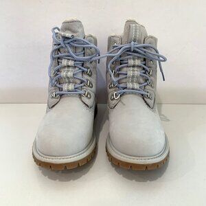 Timberland Premium Puffer Boots Leather Hiker Booties Light Grey Size 6 NEW