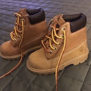 Timberland Infant 10860 6" Classic Boot size 5, style # 19512. Used in excellent condition. I actually bought these for my daughter so she only wore them a few times bc they are more of a boy type shoe and didn't always match her girly outfits so they look barely used (bc they were barley worn). Bought them for the few times she was dressed punk. So cute on boys or girls!