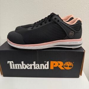 These are Timberland PRO Drivetrain Composite Toe work shoes in Women’s Size 9.5 (Style: TB0A1XHT001).