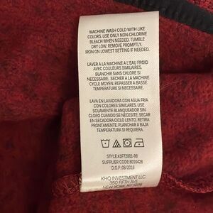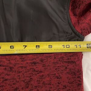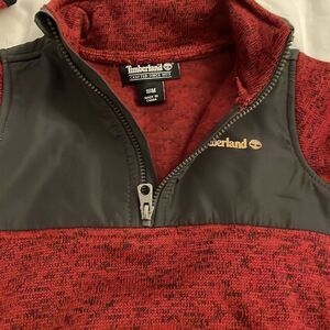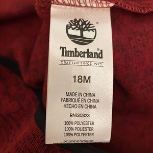 Red and black, 100% polyester, pullover long sleeve 1/2 zip, knit top by Timberland in an infant size 18 months. Machine washable. Approximate measurements shown in photos. In great pre-owned condition with little to no signs of use.