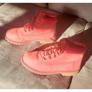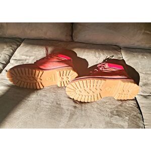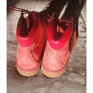 Size 6 boots. Red with a suedey feel and marked Primaloft 200 g. They have a mark near the heel on the outer left. There is evidence of wear, please see pictures for condition.