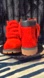 Bold red Timberland boots with textured suede and unique pattern. Ideal for making a statement. ***ALL ORDERS ARE CUSTOM AND MADE WHEN ORDERED ** MORE COLORS AVAILABLE: DARK GREEN , MINT BLUE, ROYAL BLUE , AND HOT PINK , AND KHAKI ….BOOK TODAY !!!