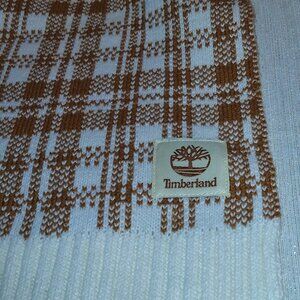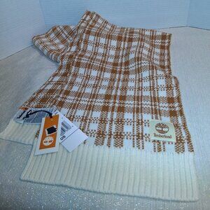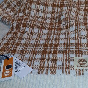 Timberland Retro Plaid Scarf Brown Ivory Ribbed Edge Comfy Warm Soft Cabin New