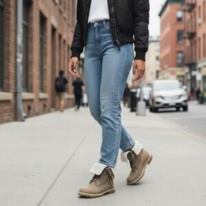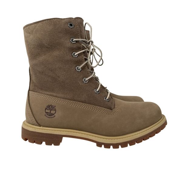 Timberland Authentic Waterproof Fleece Fold Down Light Brown/Cream Nubuck Teddy Warm lined. MSRP $170.00