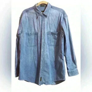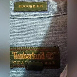 Timberland Rugged Fit Denim Button Down Mens Shirt Size M Blue Long Sleeves