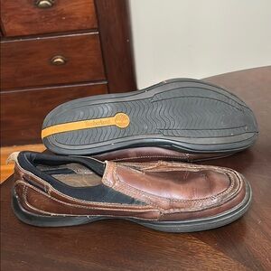 These genuine leather Timberland loafers offer a relaxed yet stylish look with their rich brown leather and slip-on design. Men’s size 12. Worn only a handful of times and in good preloved condition.