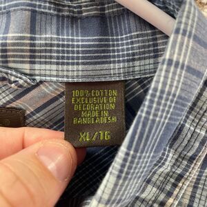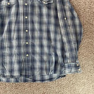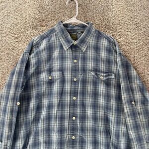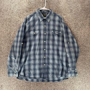 Timberland Shirt Mens Extra Large Blue Plaid Roll Tab Sleeves Button Up Casual